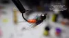 Materials Used; Hook, Fulling mill Jig Force size 16 Threads, Uni-8/0 Fire Orange and Brown Micro Glint Tail, White Coq de Leon Fibres Tag, Fire Orange Thread