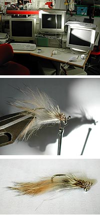 The prognoses weren't getting better, so I decided to tie some flies. I moved my vice into a sunny spot in the living room, and got out some materials. I had long played with the idea of making a small Sculpin imitation along the lines of my Kluting pattern, which has proven itself a good fly on many occasions.