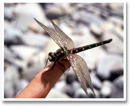 Even though the fish live on insects, don't be fooled into thinking that the fishing is only done with thin tippets and small flies. Look at the picture of the hand holding a Weta grasshopper, which can grow up to 15 centimeters (6 inches). Compare to the relatively small imitation, which caught more than 15 trout and the size 16 nymph to the left. You can also get an impression of the size of the insects by looking at the dragonfly, which is quite normal in size; about 10-15 centimeters or up to 4-6 inches.