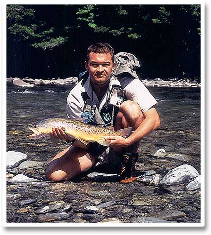 The author with a respectable New Zealand brownie. A size 16 Pheasent Tail nymph did the trick.
