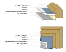 Real frame-makers will build everything from scratch, creating the wooden frame from a mold, making the shadow box, cutting the matte, cutting glass and making the additional parts needed to make the whole frame. On top of that they go to great lengths to select the right materials and glues in order to make the frame and flies last for decades.