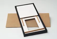 The first step is to take the frame apart, and assess the individual parts. For the sake of simplicity I will refer to a "complete" frame with a precut matte and a back-plate, which can be used for our purpose.