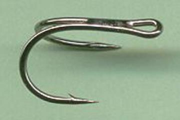 | Unlike the BMD, the "heavy nymph" double features a sproat bend on each hook. The finish is the same black nickel finish, and, as the name alludes, the wire is quite stout. This hook would also make a good chasis for a "wee double" style wet fly. | ![]() |