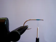 Step 1. Insert the hook in the vise. Attach the thread and wrap back two hook eye lengths.
