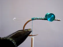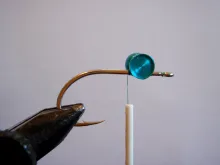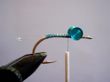 Step 11. Build up a small thread head, whip finish and cover all the exposed thread wraps with UV Clear Fly Finish.