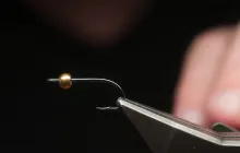 And it’s a very easy and undemanding tie. The only problem can be to find the proper bead and hook combination. If you want a hook in size 6 or 4, you need a bead that has enough clearance to pass the hook bend, which also can’t be too narrow. I found several combinations of hooks and beads in my boxes, which worked – but even more where the bead could not clear the barb or the bend unless the bead was selected in a too large and too heavy size. Thin wire and a hook with an open and round bend is the best bet in hook choice if you want to keep the bead size down.