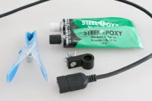 The next step was to attach the female plug to the clamp, and I opted for the crude, but efficient way: epoxy!